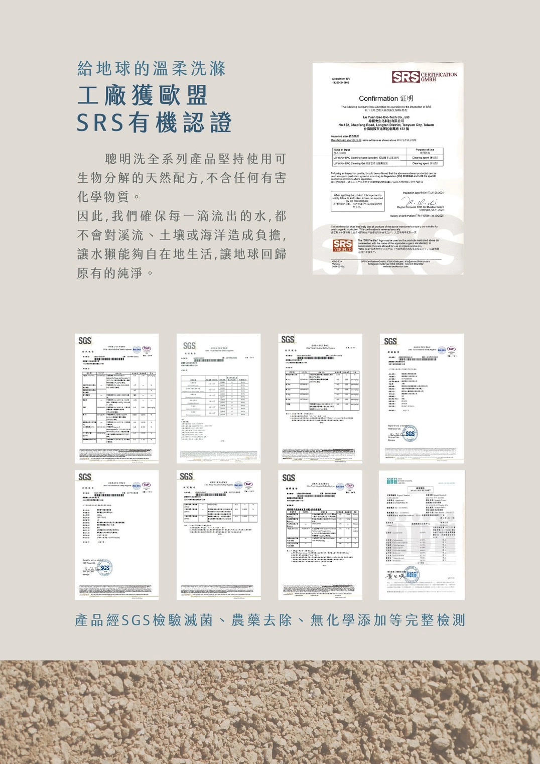 - 生產工廠取得歐盟SRS有機認證,無化學添加