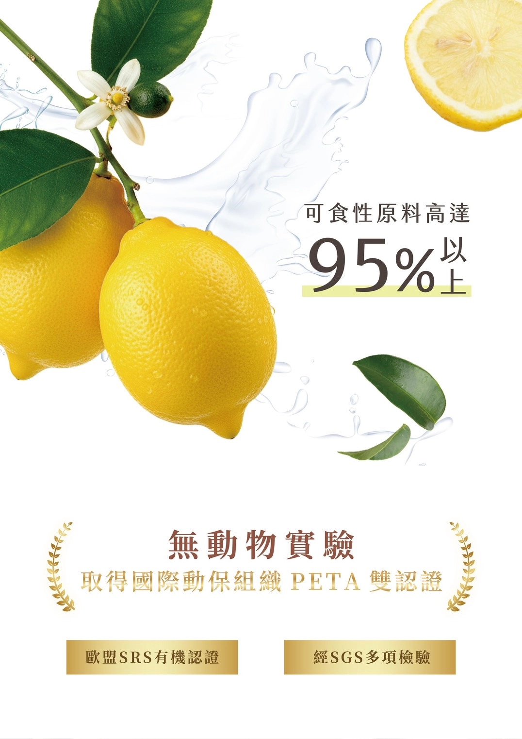- 生產工廠取得歐盟SRS有機認證,產品SGS檢驗,無化學添加